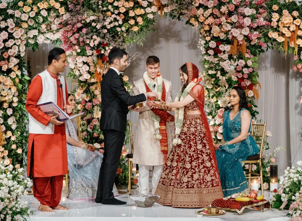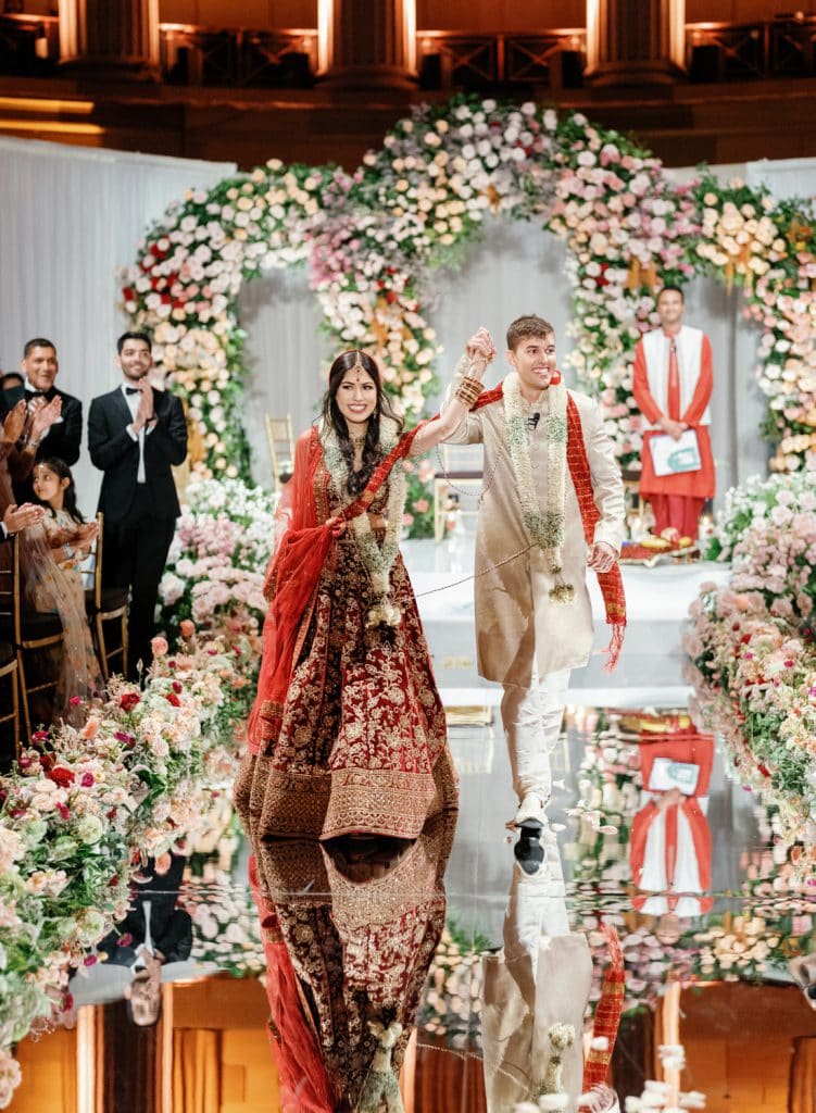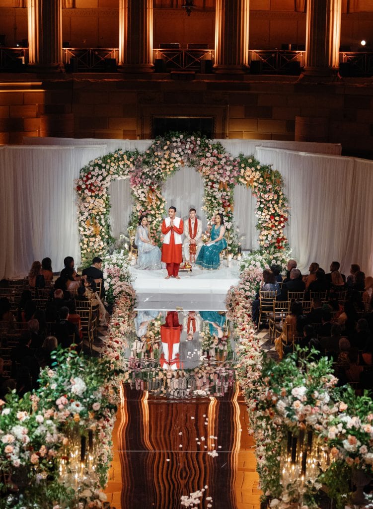 A beautiful wedding at Gotham Hall, where American and Indian traditions came together with two ceremonies—one classic, one vibrant Hindu.